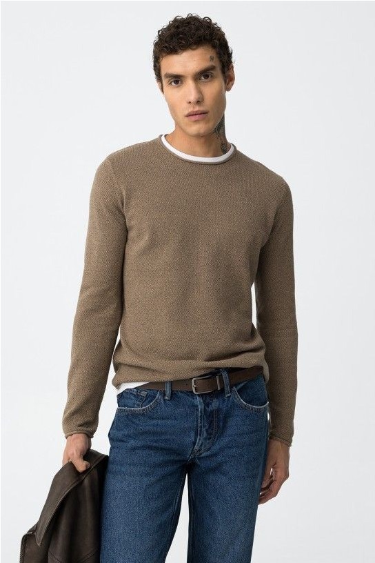 Jersey slim fit de punto piqué 100% algodón, con vivetes en cuello y bajos tipo camiseta. Cuello redondo y manga larga.